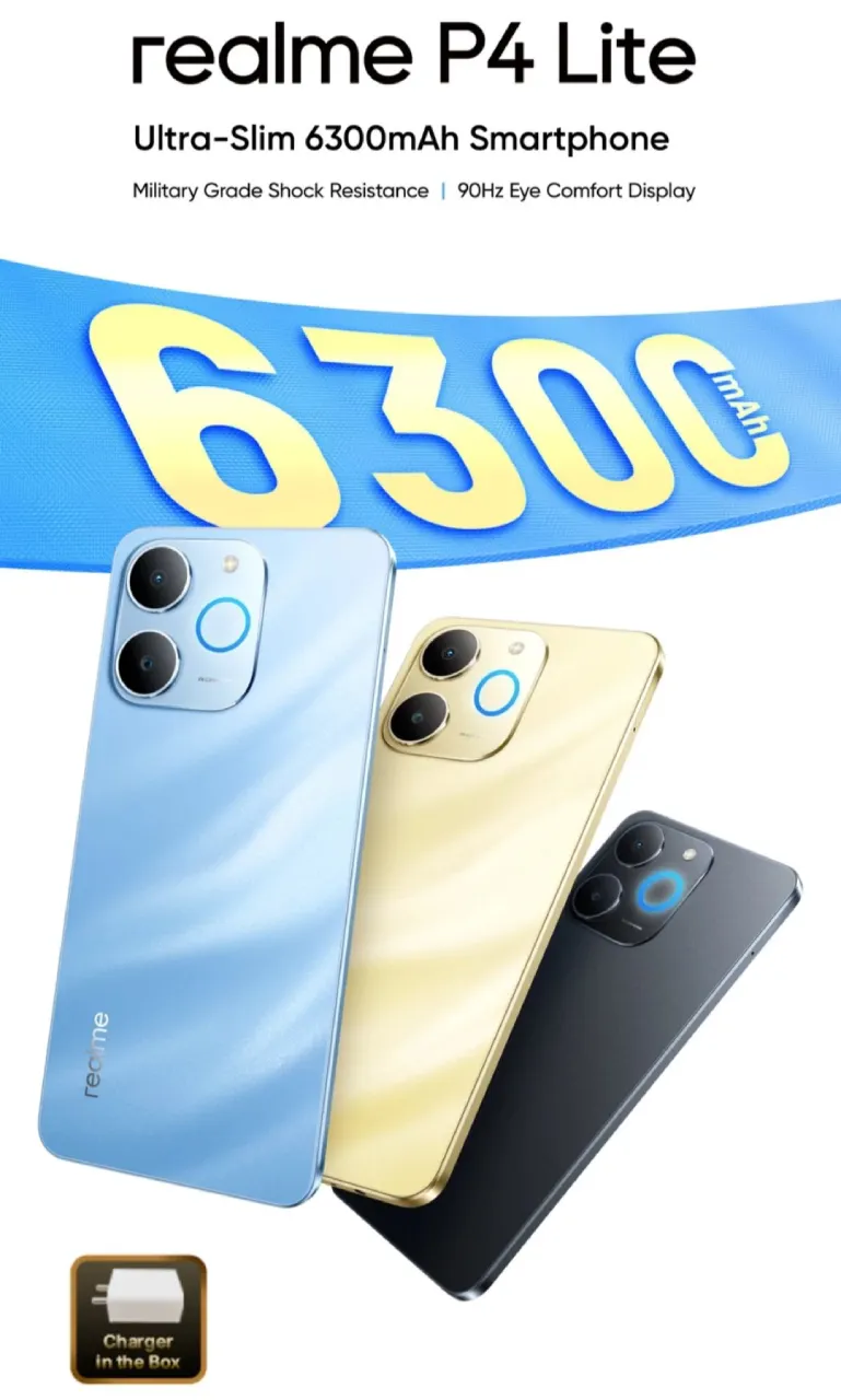 یکی از نقاط قوت اصلی در realme P4 Lite 4G، استفاده از باتری ۶۳۰۰ میلیآمپری است که طبق ادعای ریلمی، بزرگترین باتری در این کلاس قیمتی محسوب میشود. علیرغم ظرفیت بالای باتری، این دستگاه پروفایل باریک خود را حفظ کرده و ضخامت آن تنها ۷.۹۴ میلیمتر است. همچنین، ریلمی تأیید کرده که این گوشی بههمراه شارژر در داخل جعبه عرضه خواهد شد که این روزها یک مزیت قابلتوجه است.