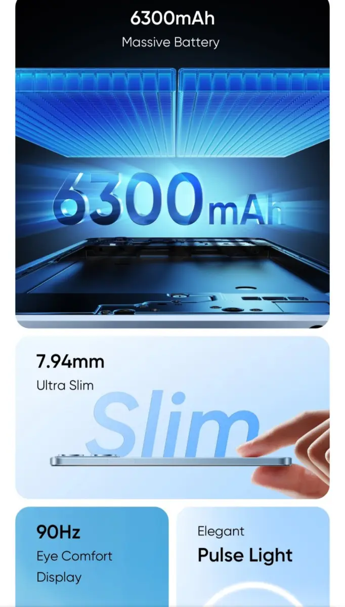 🔹 بهرهمندی از باتری پرظرفیت ۶۳۰۰ میلیآمپرساعتی در بدنهای باریک با ضخامت ۷.۹۴ میلیمتر.